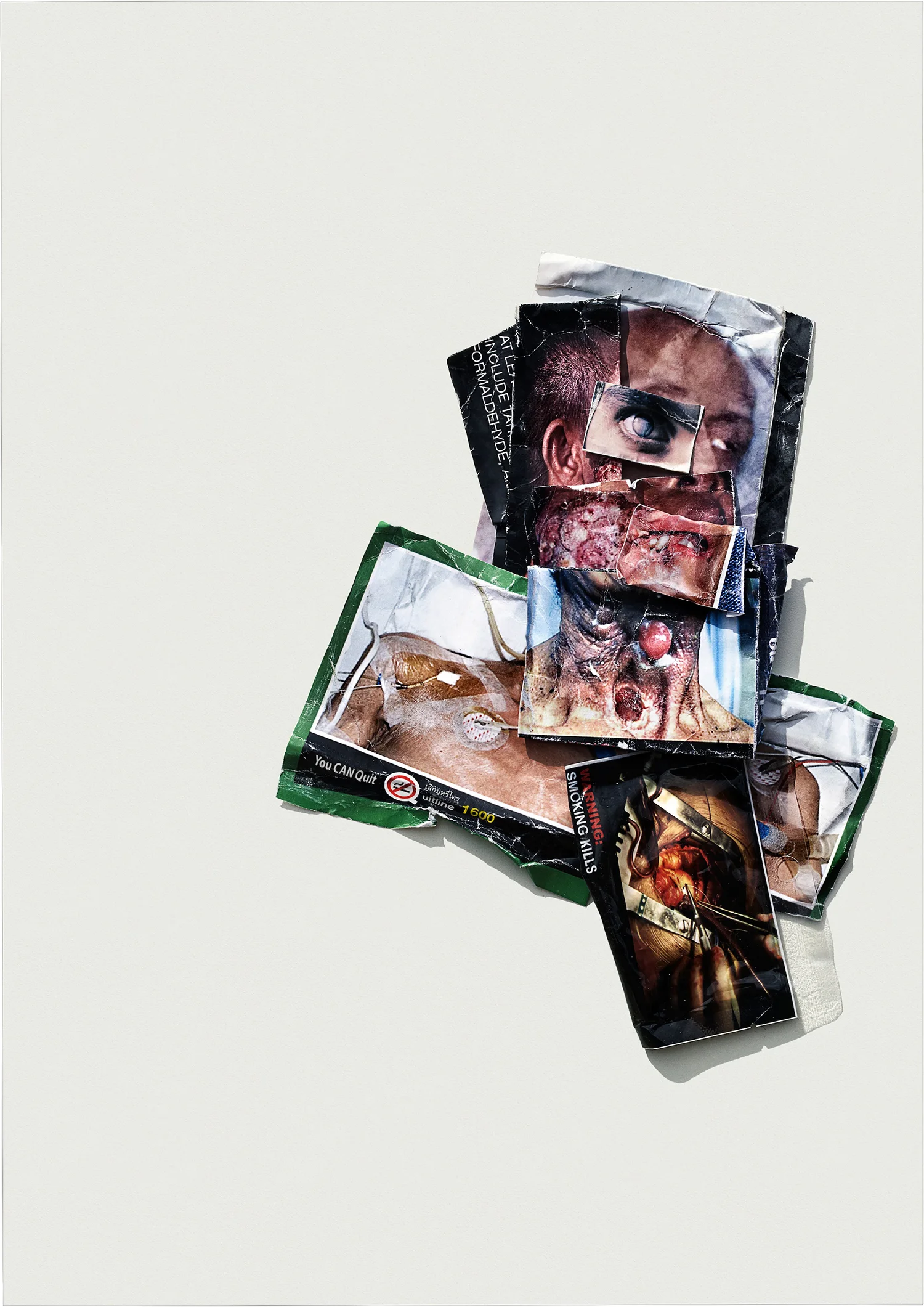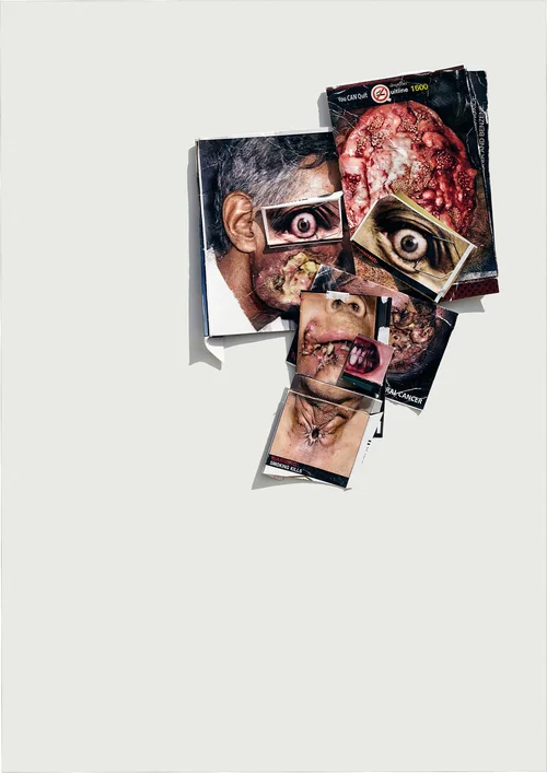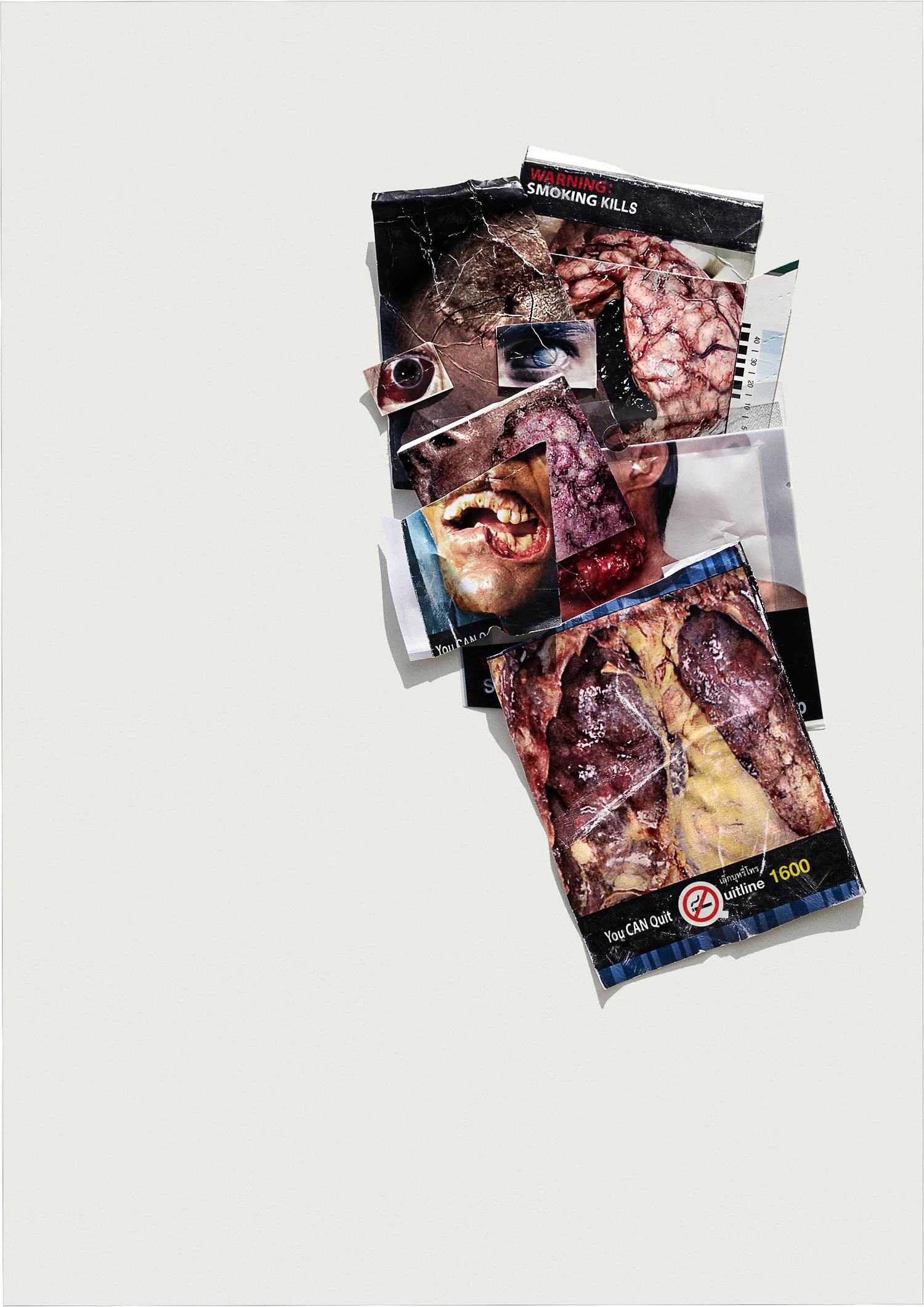 The warning signs on tobacco products in South East Asian countries are known to be brutal to the max. From infants in intensive care units to the rotten body parts with missing limbs, it's intimidating to pull a cigarette out of them. We decided to stress the impact of these images by bringing them together into various collage compositions in poster series and a film for Thai Health Promotion Board. The campaign brought us a huge success.