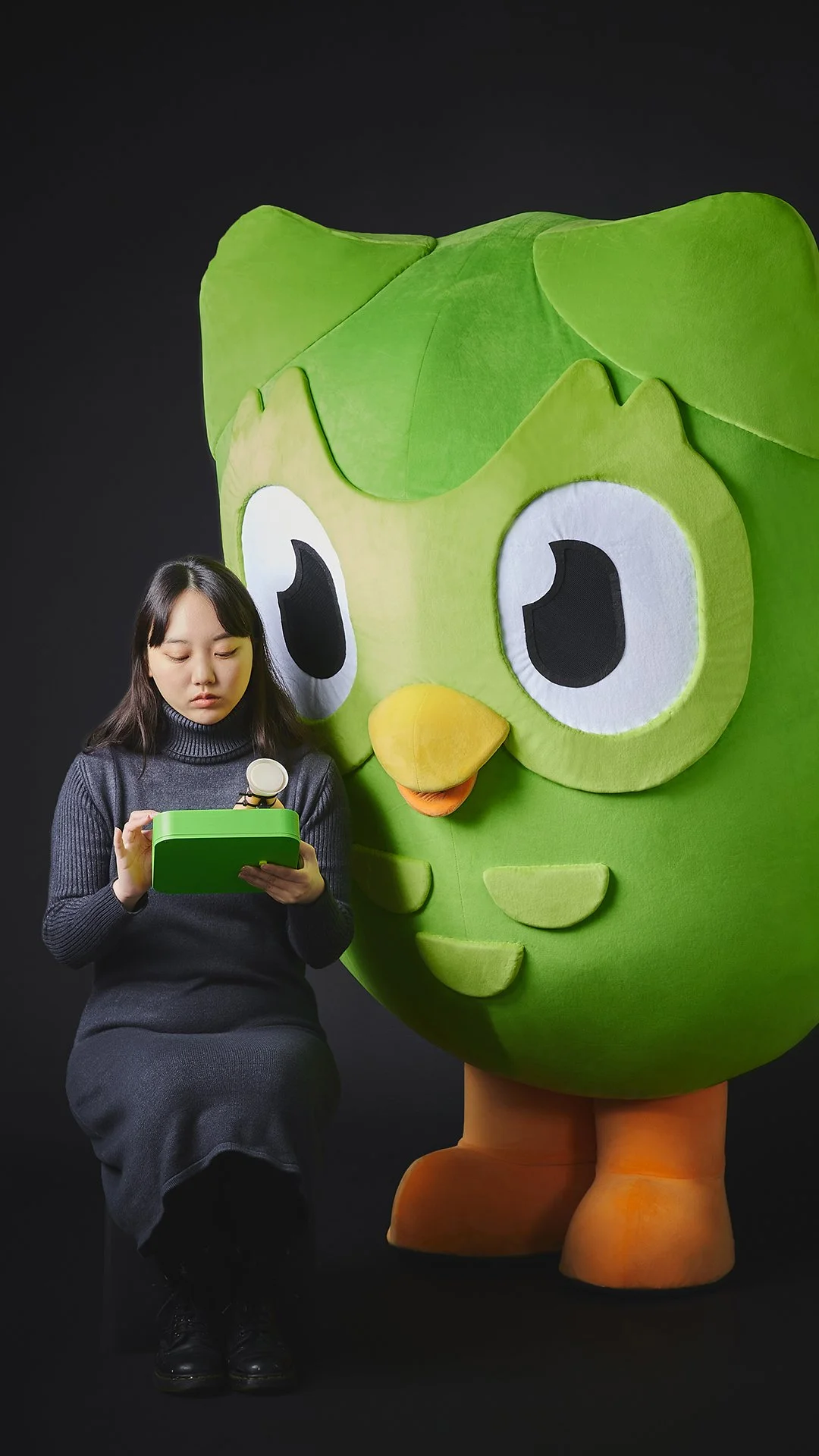 Marina Fujiwara, a Japanese inventor famous for her bizarre inventions, joined forces with us to save Gen-Z from mindless scrolling and to delight Duolingo's wild mascot, Duo, for good and all! Together, we developed a wacky tool that helps you focus solely on your language lessons by blocking notifications from other apps. At the end of the day, how clunky your phone becomes is the least of Duo’s worries, as long as you keep up with your daily streaks!